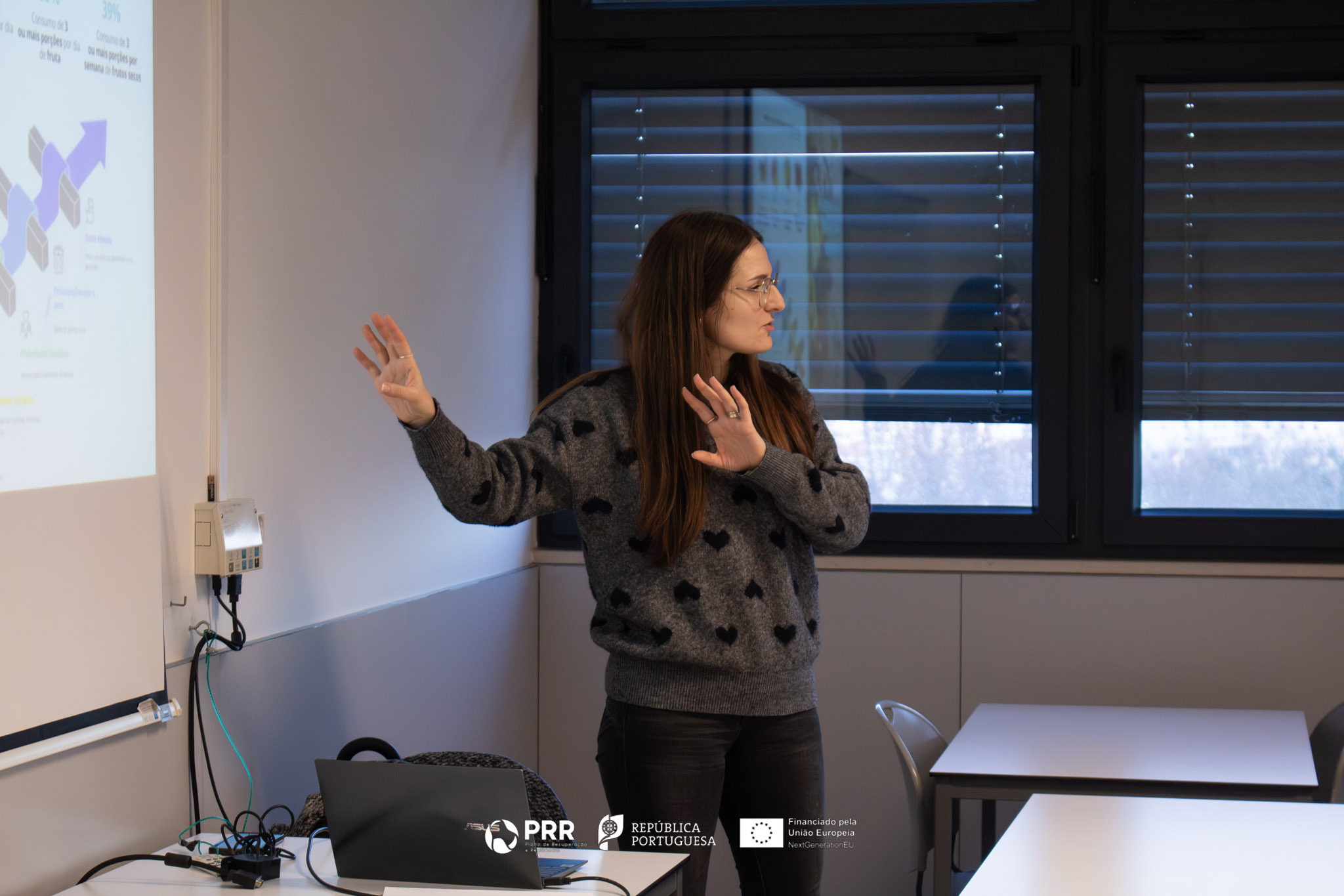 A sessão, dinamizada pela Professora Sandra Abreu, da Universidade de Trás-os-Montes e Alto Douro (UTAD), teve como principal objetivo compreender de que forma os hábitos alimentares influenciam a saúde e bem-estar.